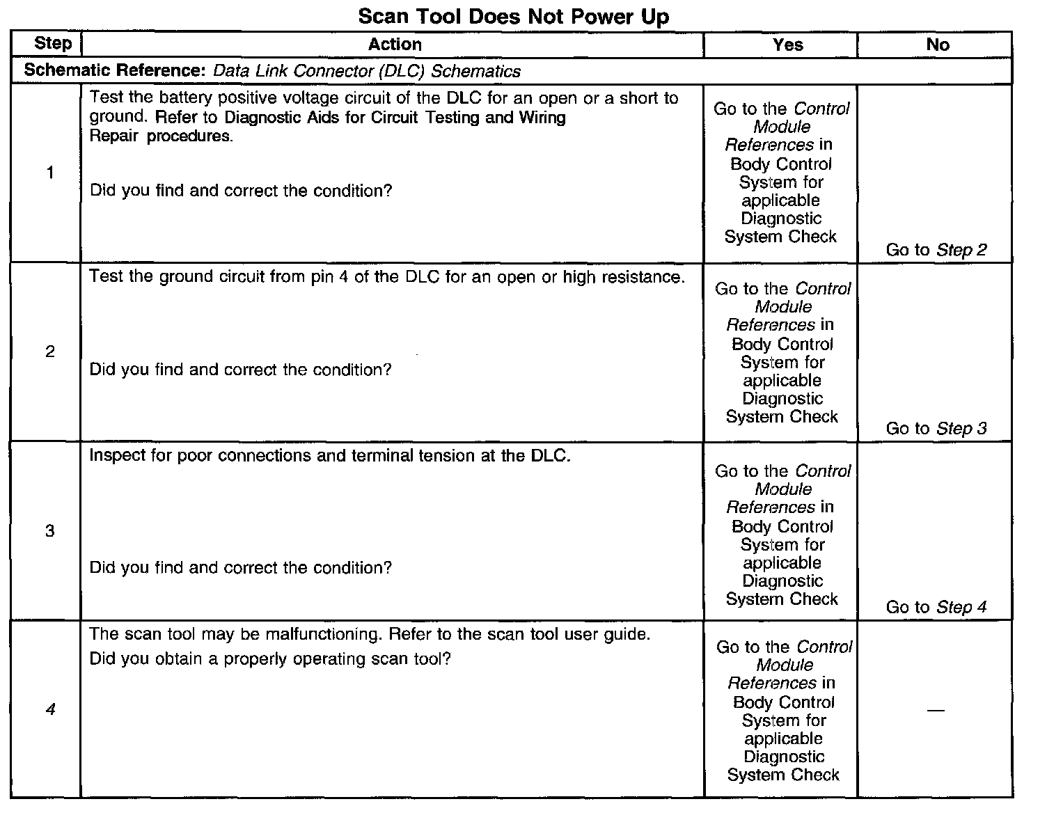 4. If the battery positive voltage and ground circuits of the DLC are functioning properly. The malfunction must be due to the scan tool.