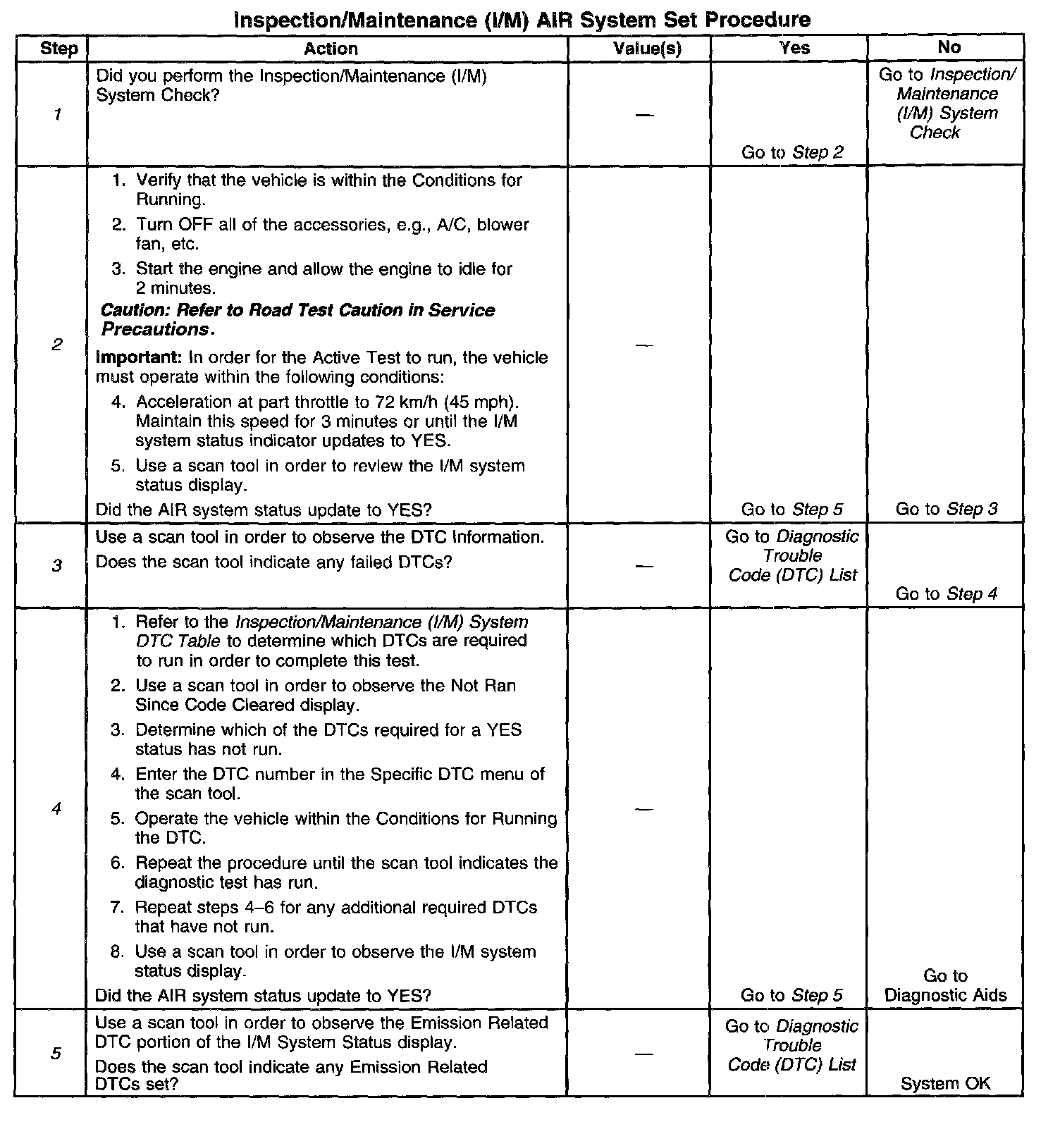 I/M AIR System Set Procedure