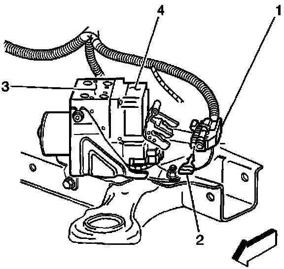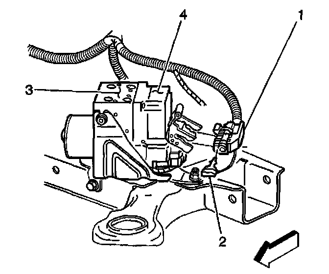 8. Remove the EBCM electrical connector (1) from the EBCM (4).