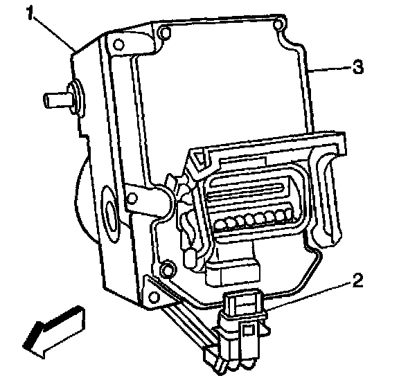 4. Install the BPMV electrical connector (2) to the EBCM (3).