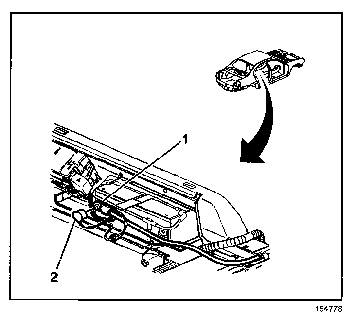 IMPORTANT: Ensure the vent tube (1) is properly routed through the floor pan grommet.