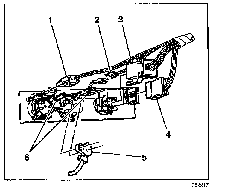 1. Install the temperature control cable connector (5) to the HVAC control assembly.