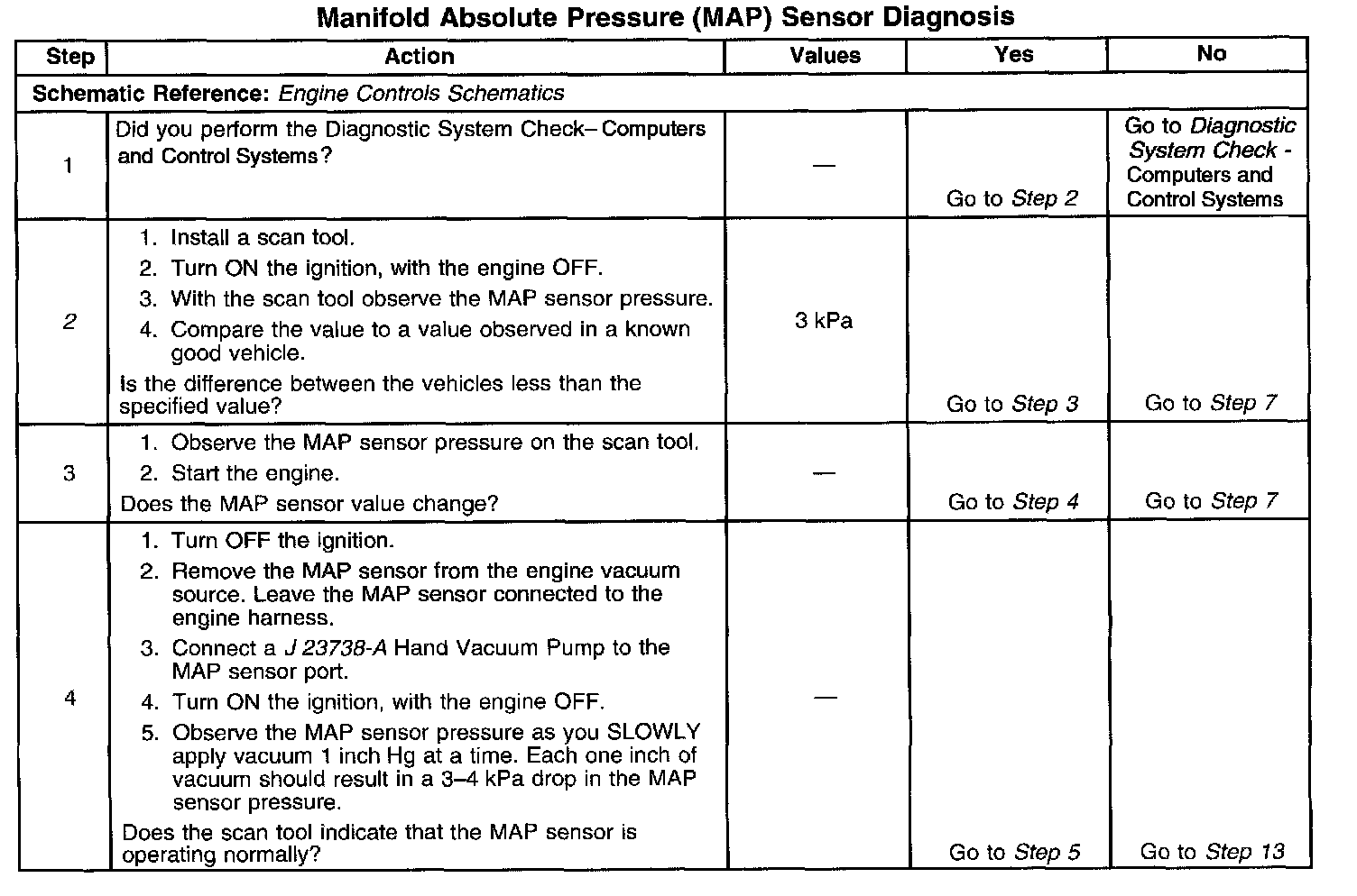 2. This step tests the MAP sensor's ability to correctly indicate barometric pressure. Barometric pressure varies with altitude and atmospheric conditions. 103 kPa is the approximate barometric pressure displayed by the MAP sensor at or near sea level.