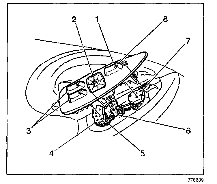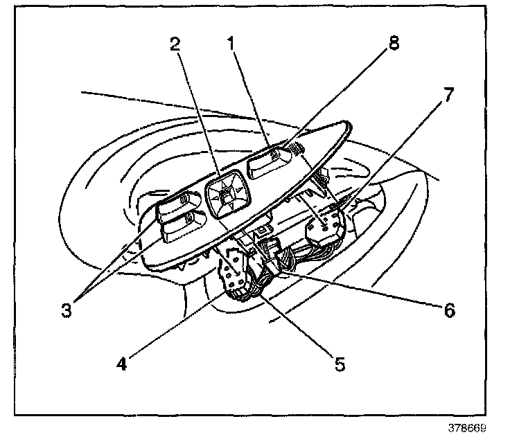 3. Disconnect the electrical connector (6) from the mirror switch (2).