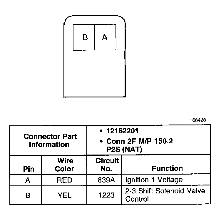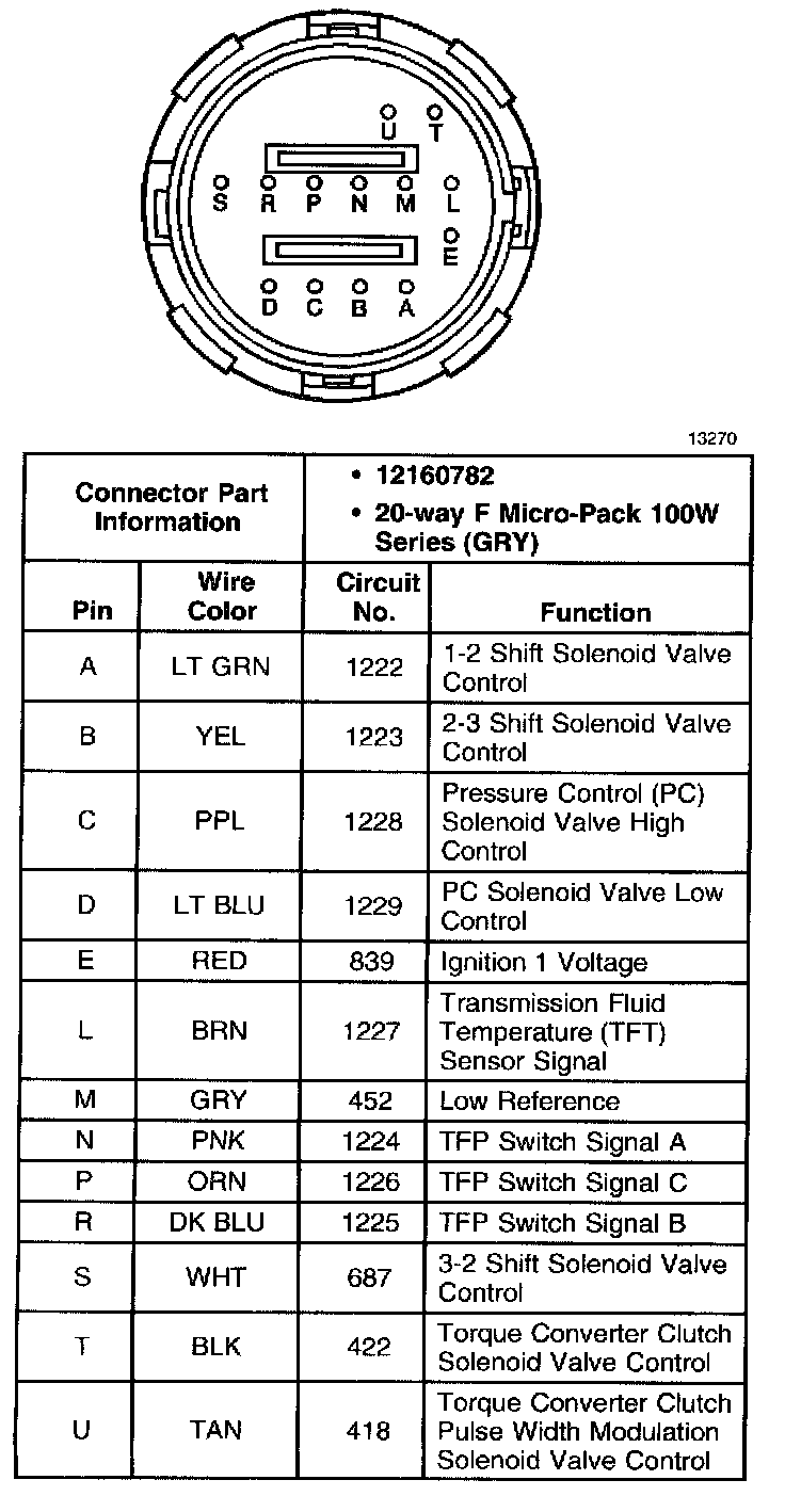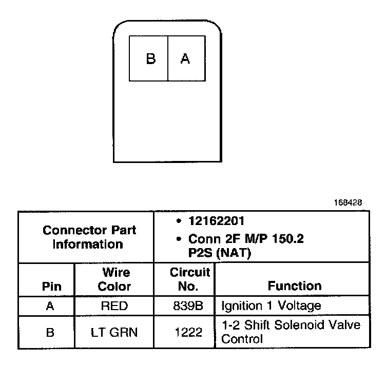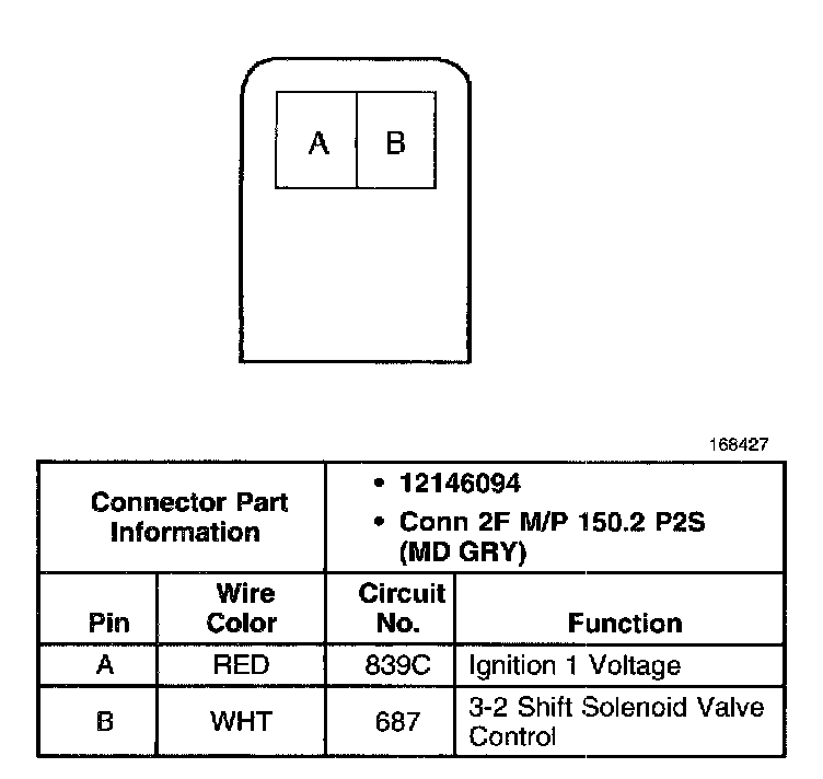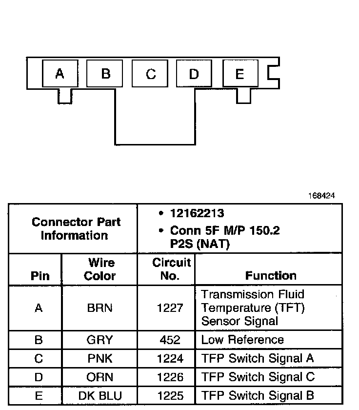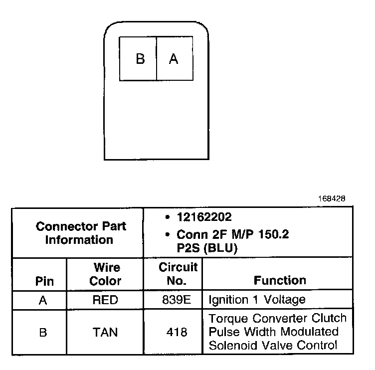 Torque Converter Clutch Pulse Width Modulated (TCC PWM) Solenoid Valve Connector, Wiring Harness Side