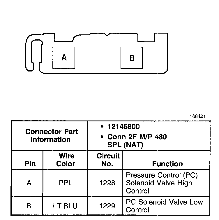 Pressure Control (PC) Solenoid Valve Connector, Wiring Harness Side