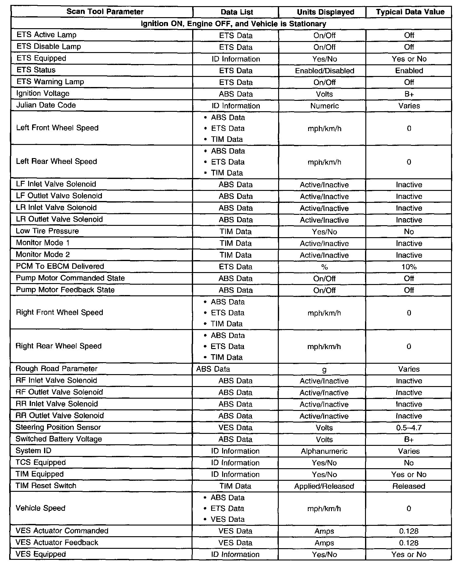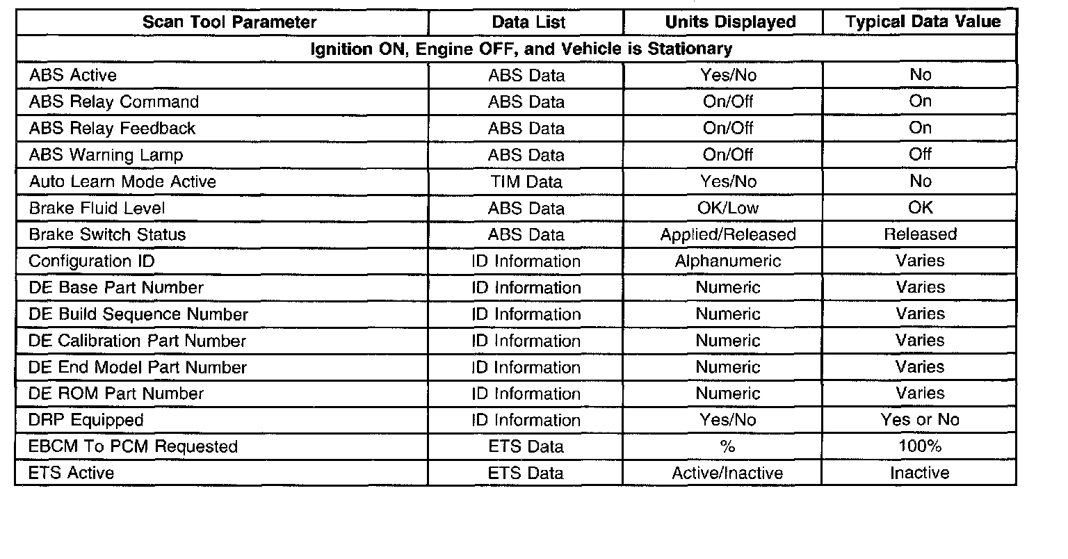 Scan Tool Data List