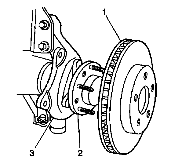 5. Clean the metal contact surfaces between the brake rotor and the hub bearing flange (2).
