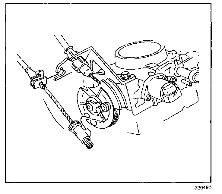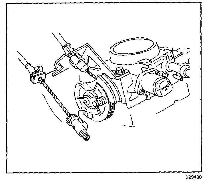 6. Install the cruise control cable to the throttle body bracket pressing into place until fully seated.