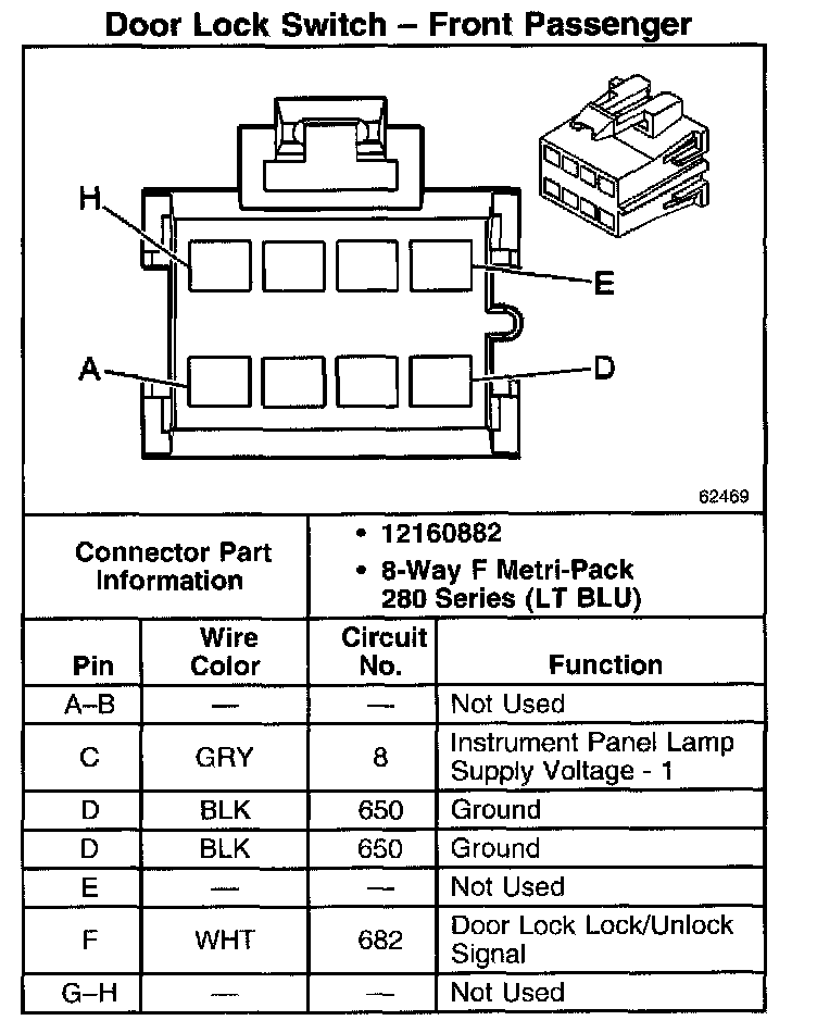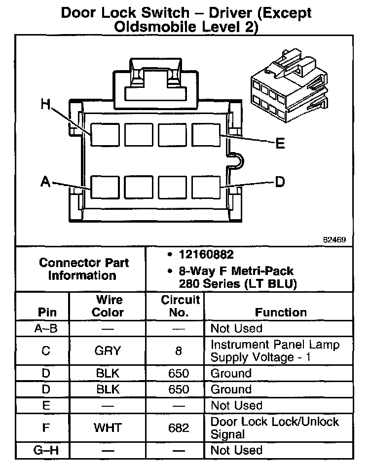 Door Lock Switch - Driver (Except Oldsmobile Level 2):