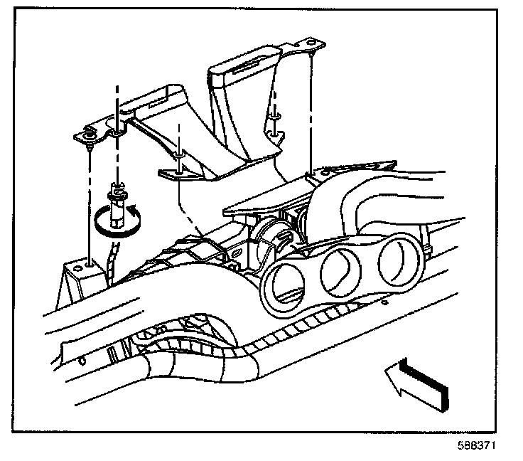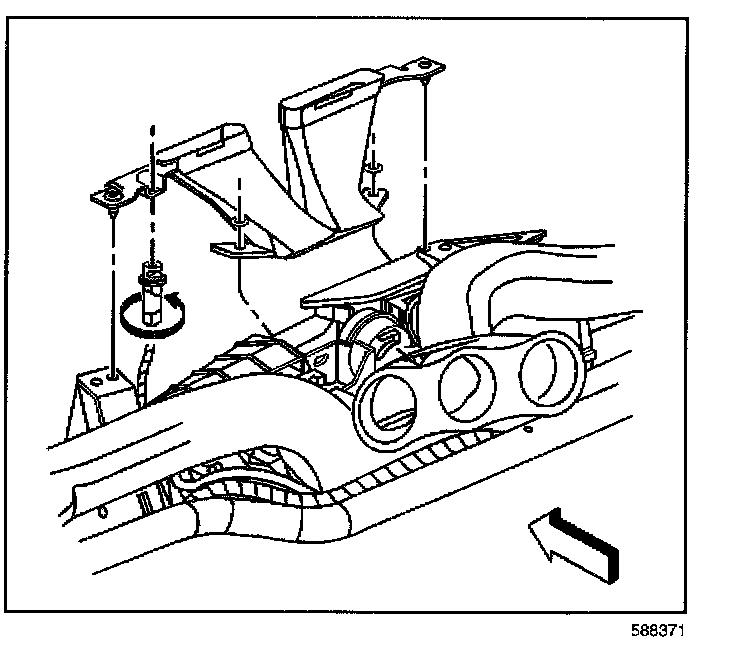 4. Remove the defroster duct retainers from the air distribution duct.