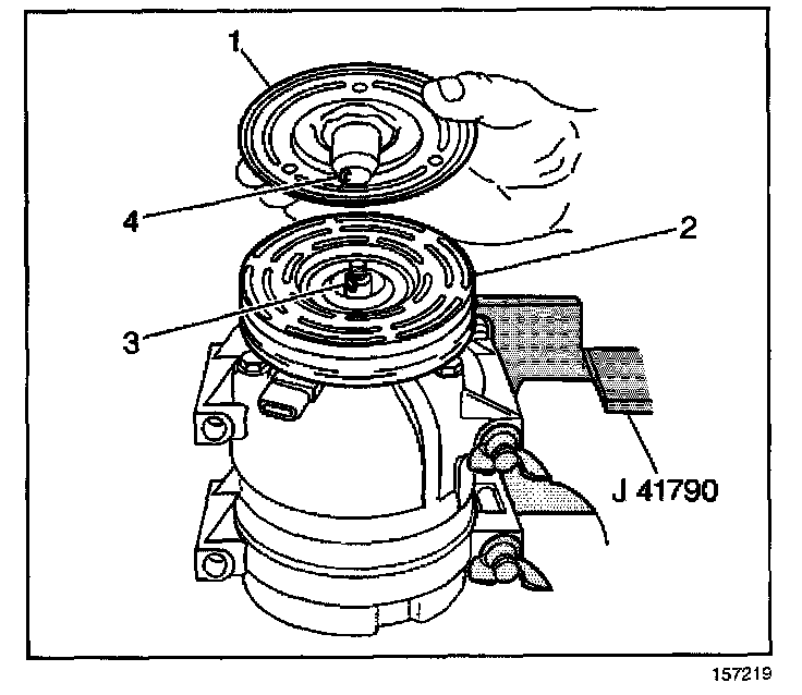 3. Align the shaft key with the shaft keyway in the clutch plate and the hub assembly and place onto the compressor shaft (3).