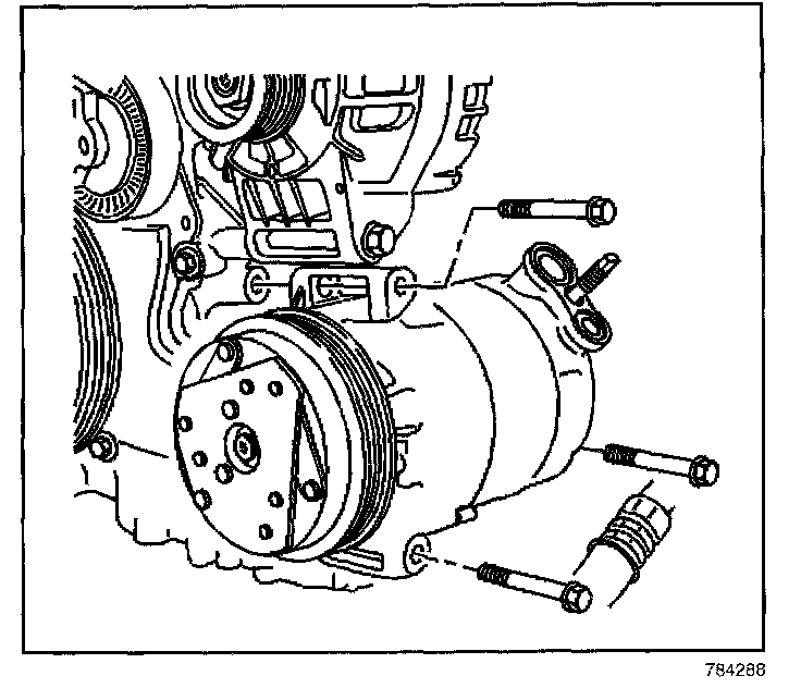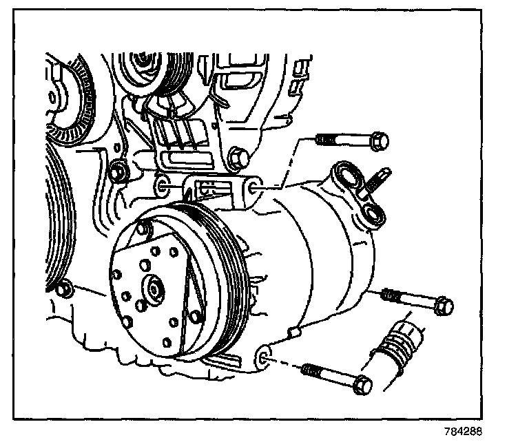 7. Remove the Compressor hose assembly bolt from the compressor.