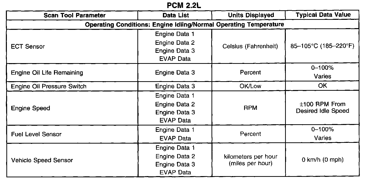 Scan Tool Data List - Powertrain Control Module (PCM)