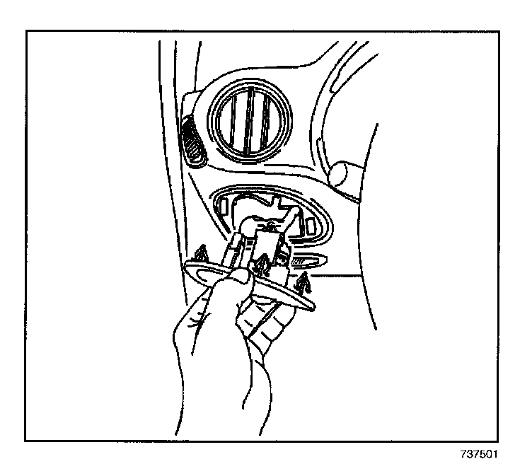 5. Disengage the retainers on the fog lamp dimmer switch.