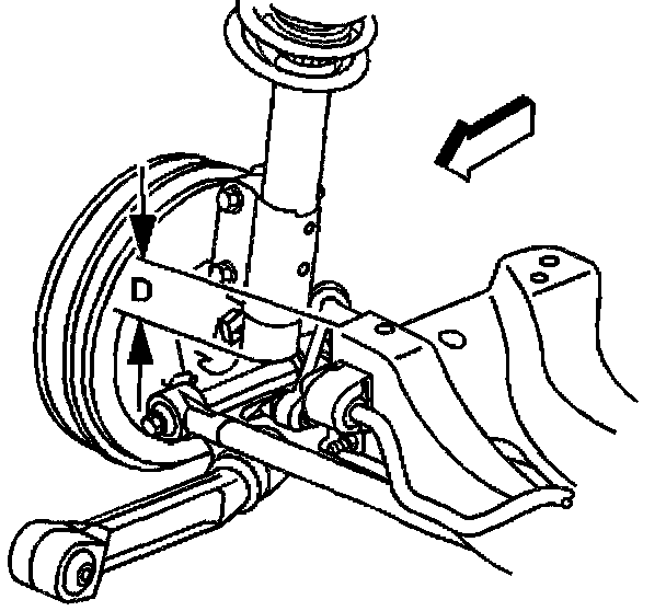 The D height dimension measurement determines the proper rear end ride height. There is no adjustment procedure. Repair may require replacement of suspension components.