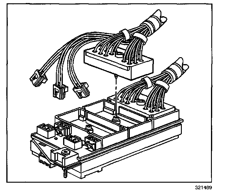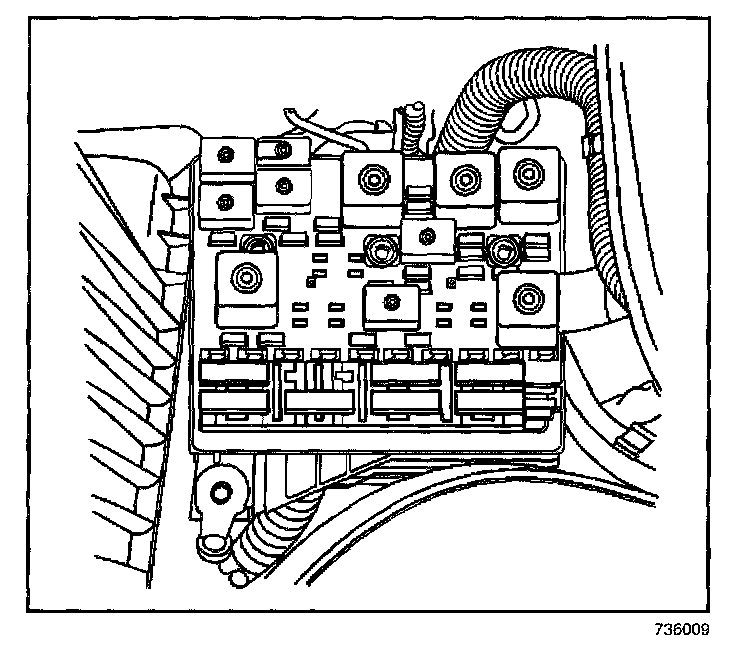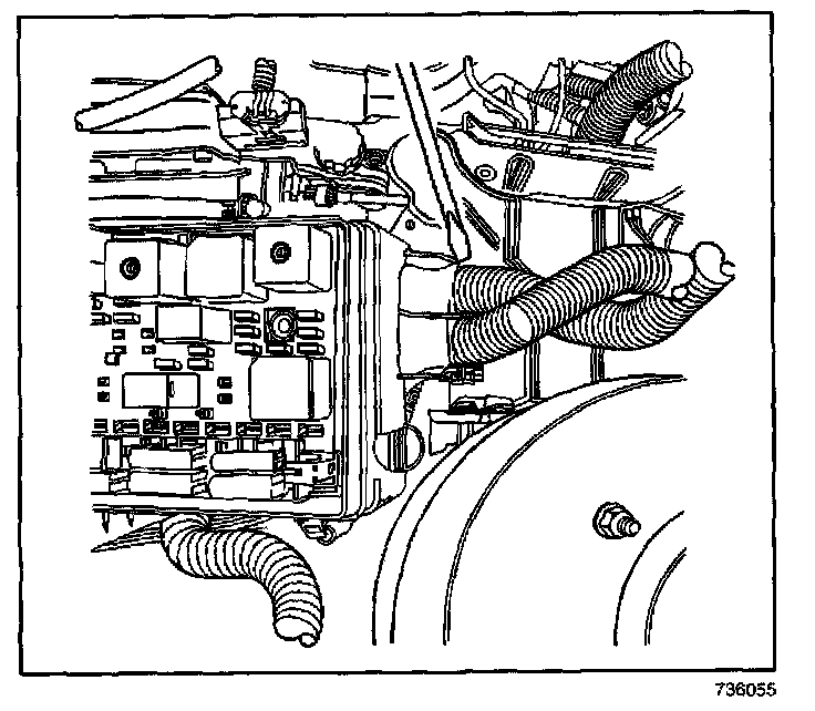 12. Loosen the bolts retaining the engine, the I/P, and the forward lamp wiring harness connectors to the junction block.