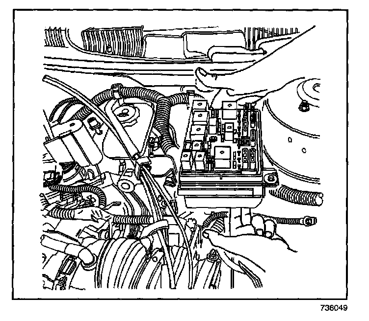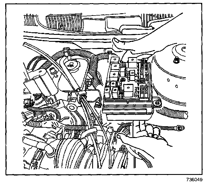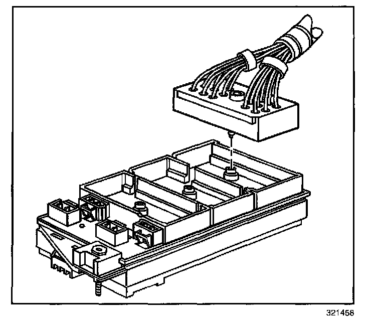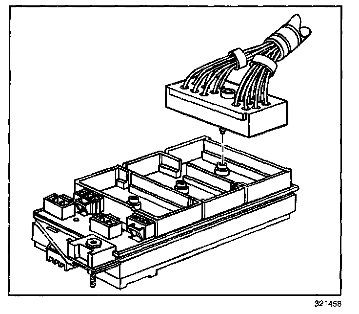 6. Reach under the front of the junction block. Press up on the relief in order to release the retainer tab.