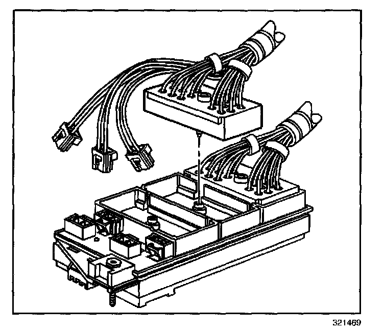 5. Connect the I/P wiring harness individual connectors to the junction block.