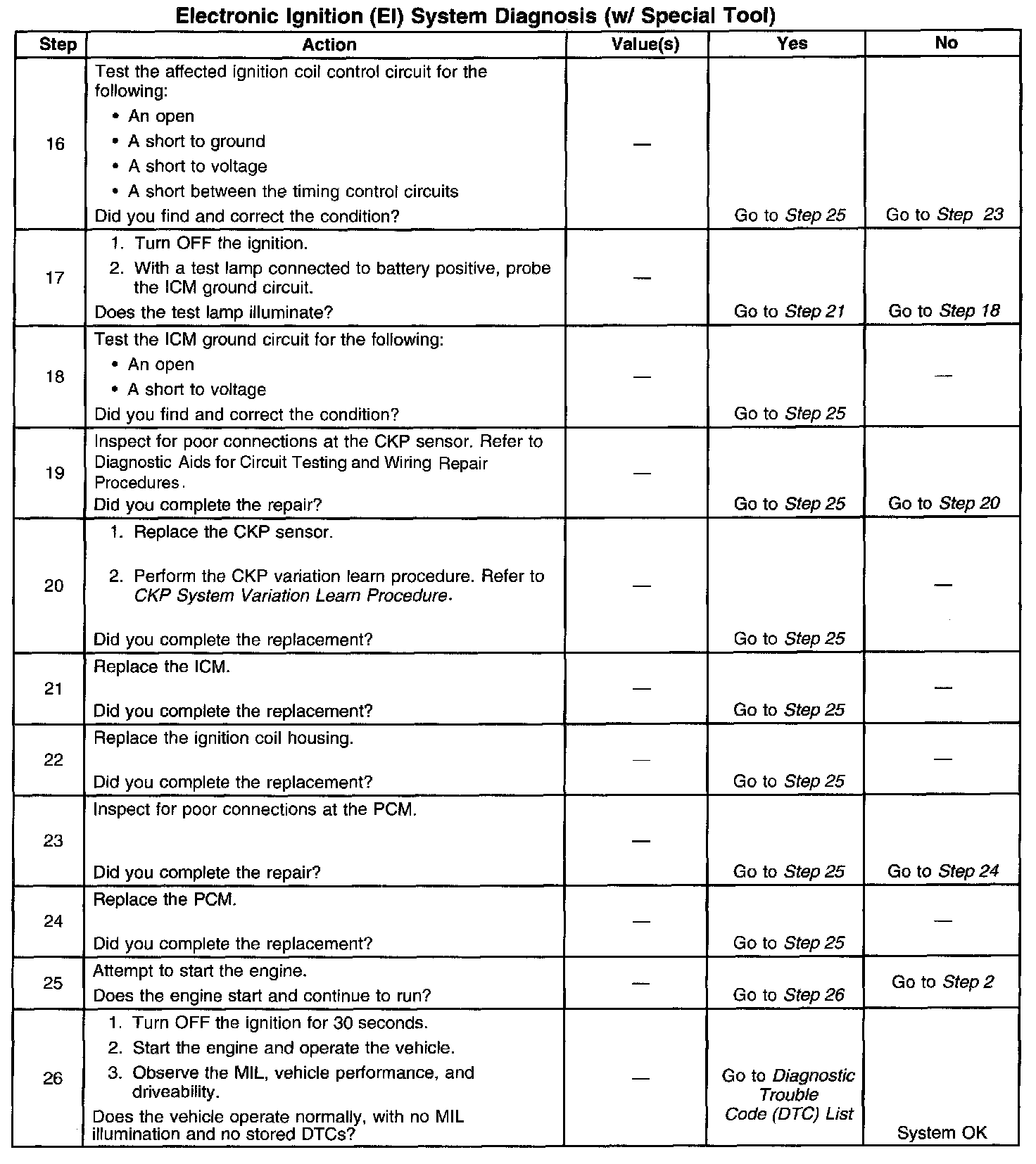 ^ A small amount of resistance in the battery positive voltage circuit to the PCM may cause a no start. Test the battery positive voltage circuit for excessive resistance or corrosion. Refer to Wiring Repairs in Diagnostic Aids.