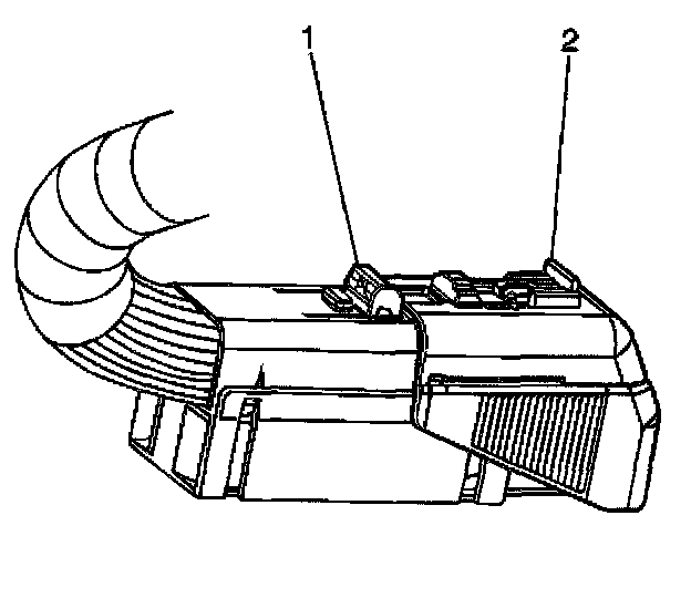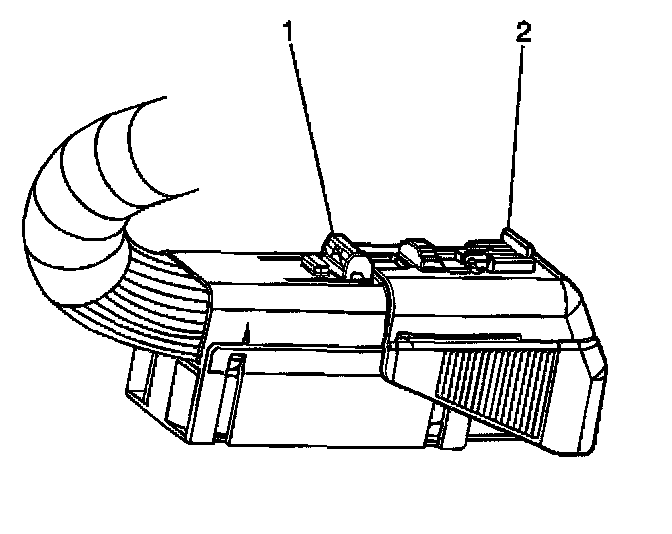 3. Remove the Connector Position Assurance (CPA) (2) from the connector lock tab (1).