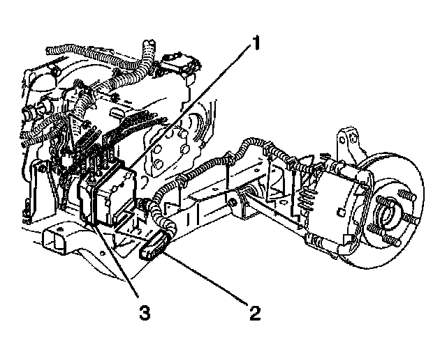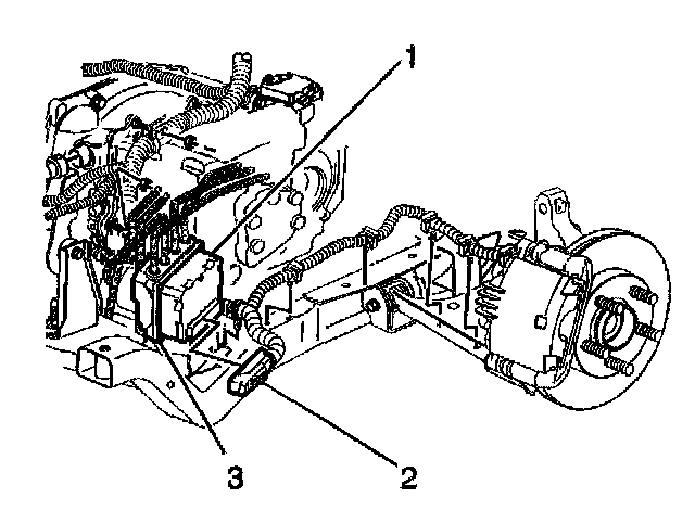 5. Disconnect the EBCM harness connector (2) from the EBCM (1).