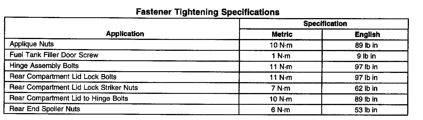 Fastener Tightening Specifications: