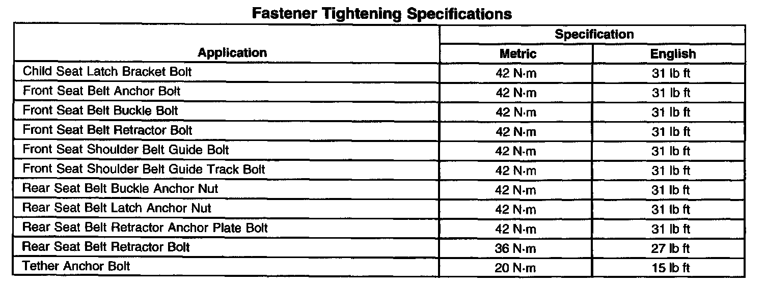 Fastener Tightening Specifications: