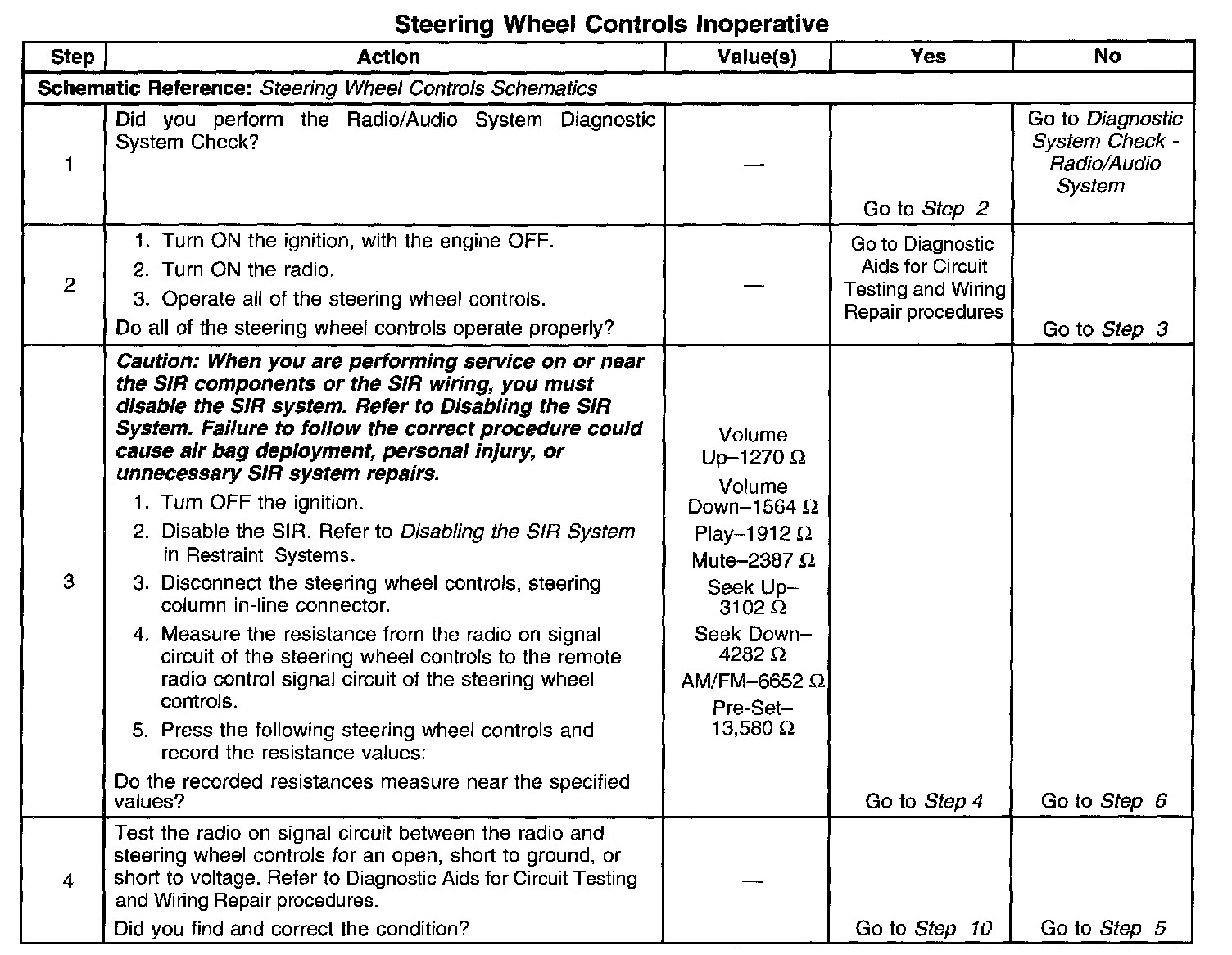 Steering Mounted Controls Transmitter: Testing and Inspection