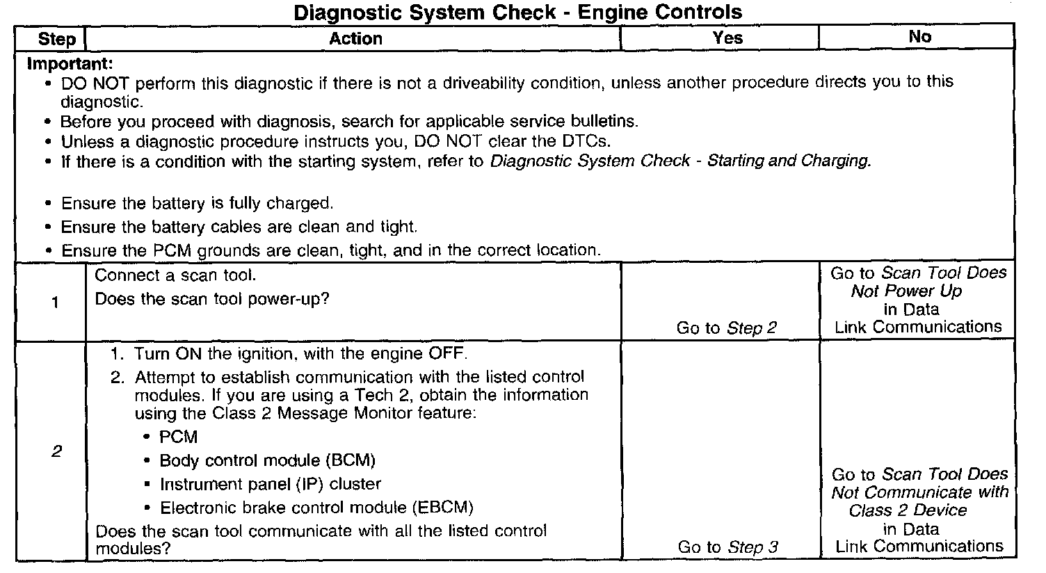 DESCRIPTIONThe Diagnostic System Check-Computers and Controls Systems is an organized approach to identifying a condition that is created by a malfunction in the powertrain control system. The Diagnostic System Check must be the starting point for any driveability concern. The Diagnostic System Check directs the service technician to the next logical step in order to diagnose the concern. Understanding and correctly using the diagnostic table reduces diagnostic time, and prevents the replacement of good parts.