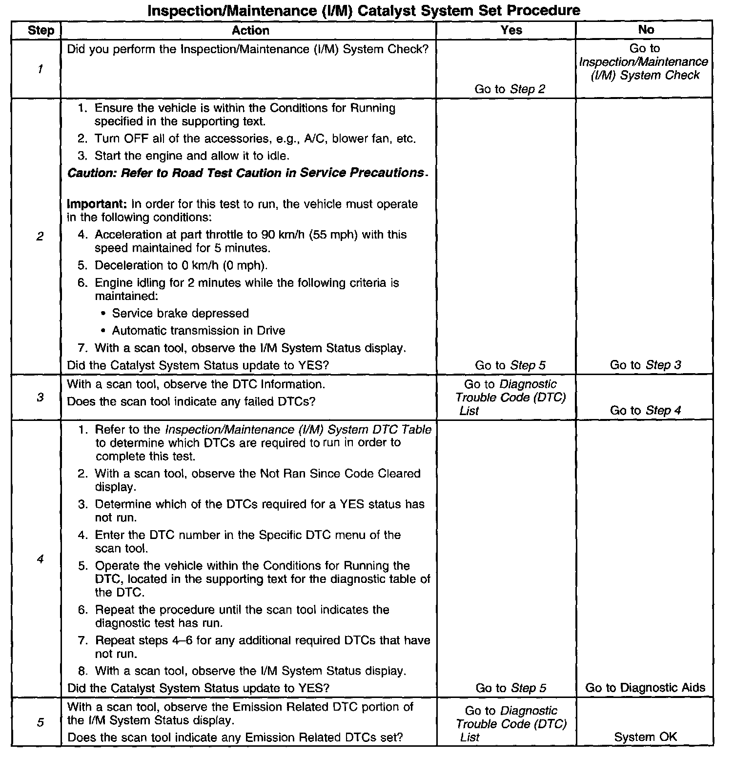 5. The I/M System Status only reports on whether or not a diagnostic has run, not what the outcome of the test was. If any Emission Related DTC sets after the tests are complete, the DTC will require diagnosis.