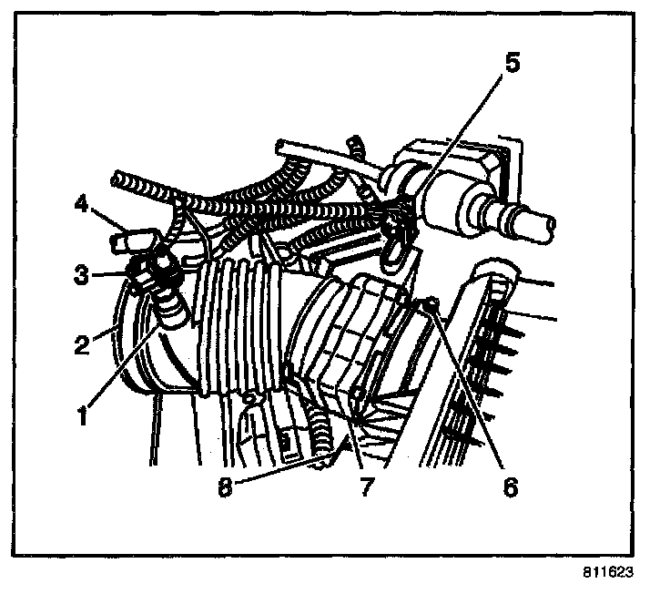 4. Remove the air cleaner intake duct from the air cleaner housing (8) and the throttle body.