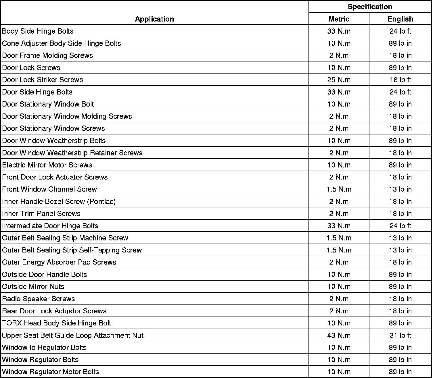 Fastener Tightening Specifications