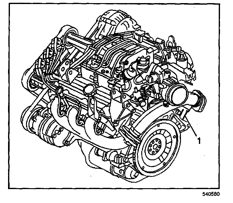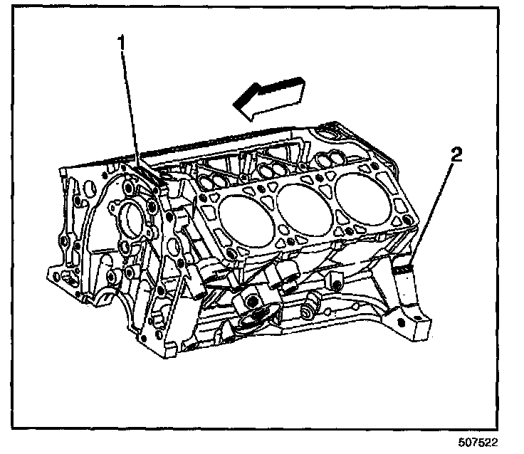 The primary location of the VIN derivative for the 3800 L36 and L67 engine is above the starter motor on the engine block (1).