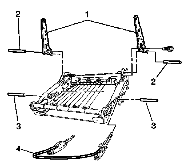 8. Remove the inertia seat back lock assembly (1) from the seat.