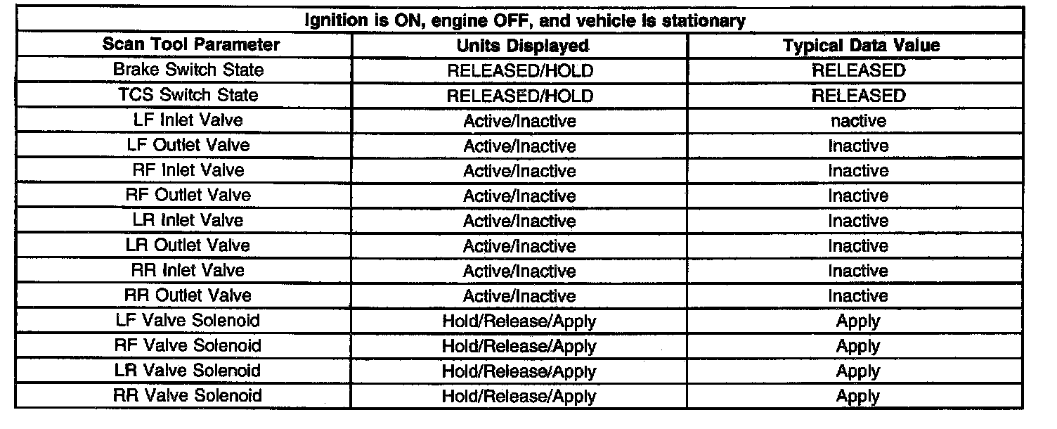 Use the Scan Tool Data Lists as directed by a diagnostic table or in order to supplement the diagnostic procedures. Begin all the diagnostic procedures with the ABS Diagnostic Starting Point. Use the Scan Tool Data Lists only after the following is determined: Diagnostic Starting Point - Antilock Brake System