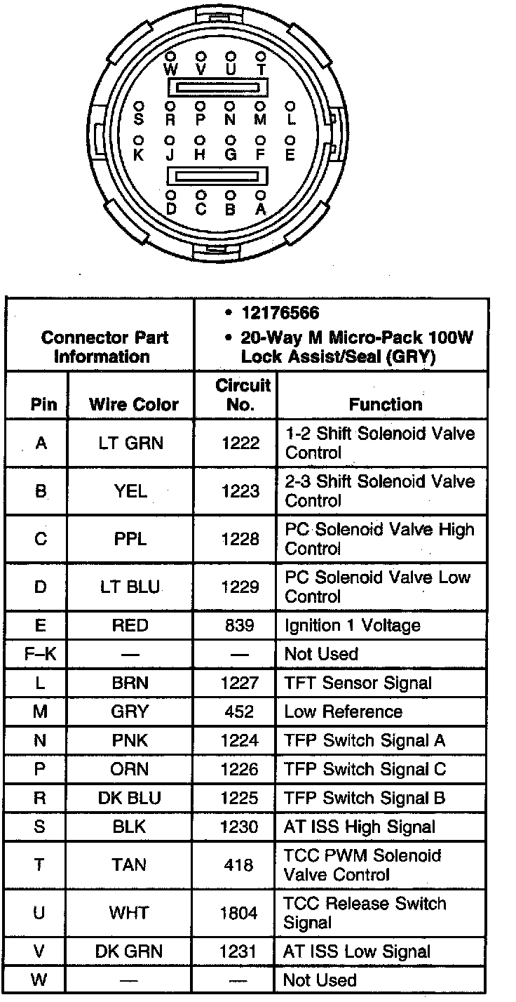 A/T Inline Harness 20-Way Connector, Transmission Side: