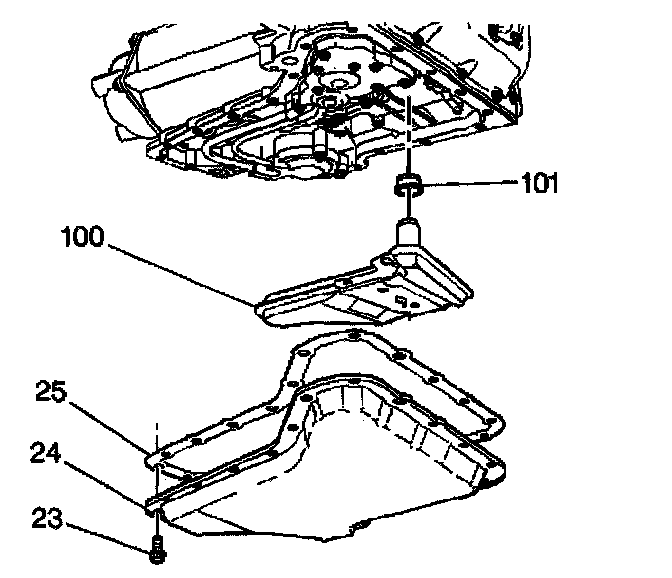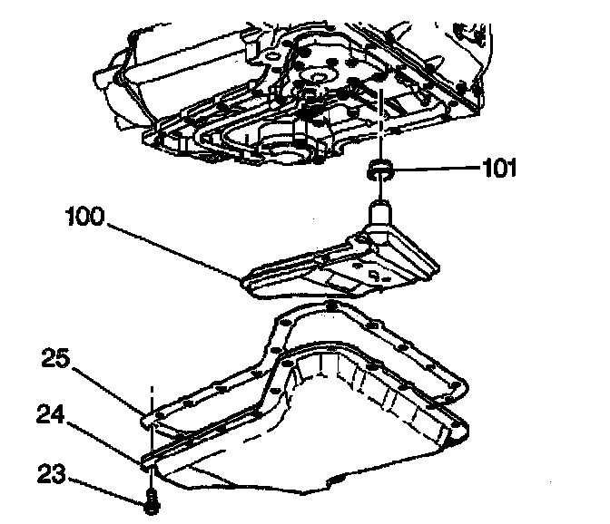 3. Install the gasket (25) and the oil pan (24).