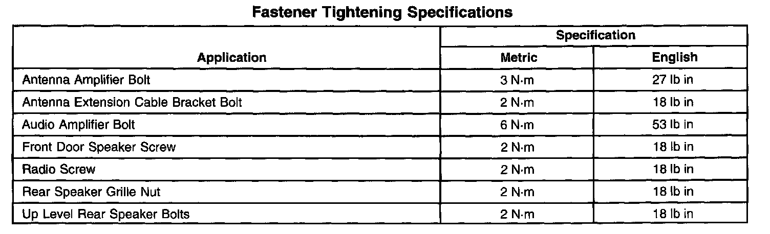 Fastener Tightening Specifications: