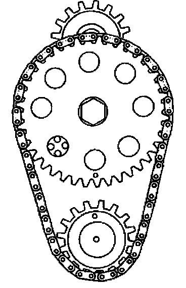 2. Install the timing chain on the sprockets. Align the timing marks.