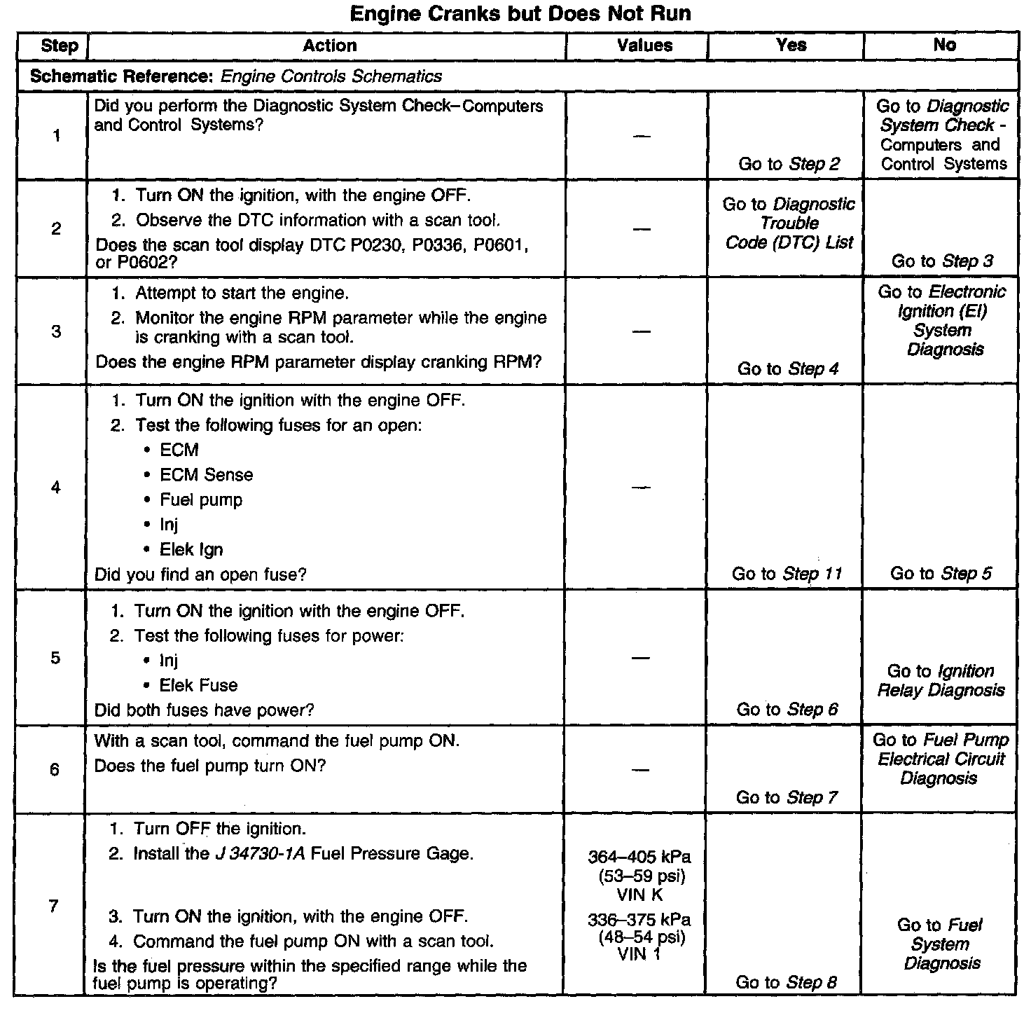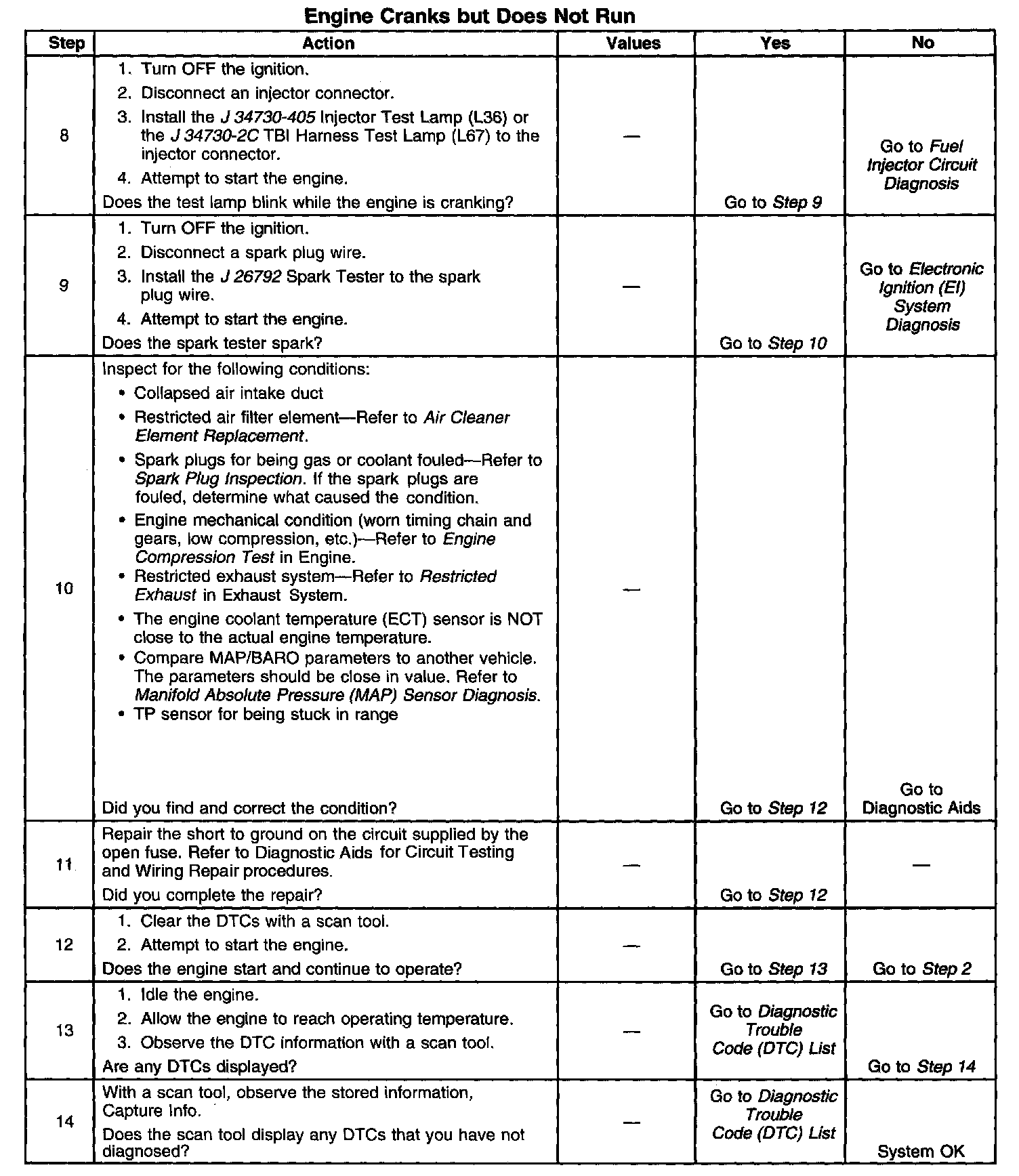 The table will isolate the failed system and lead to the correct diagnostic procedure.