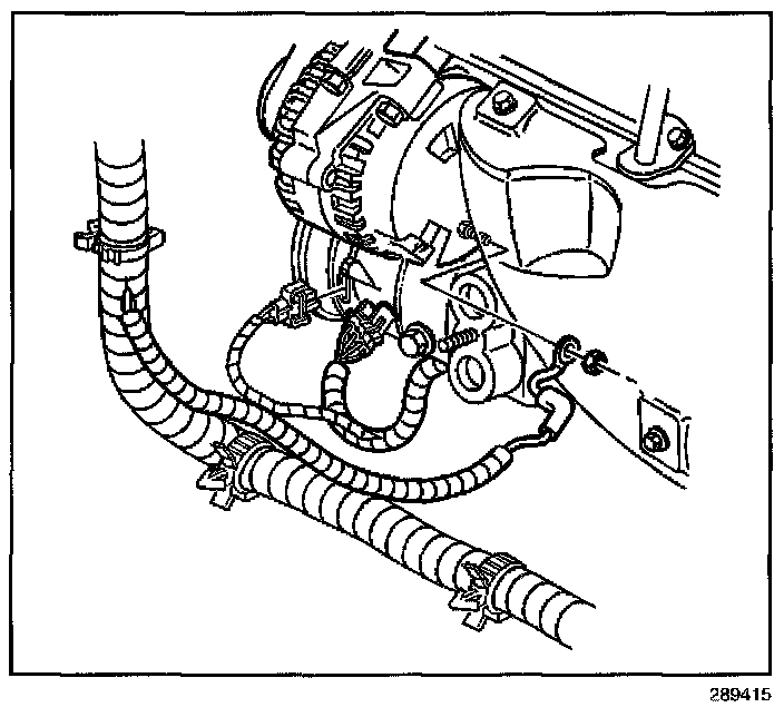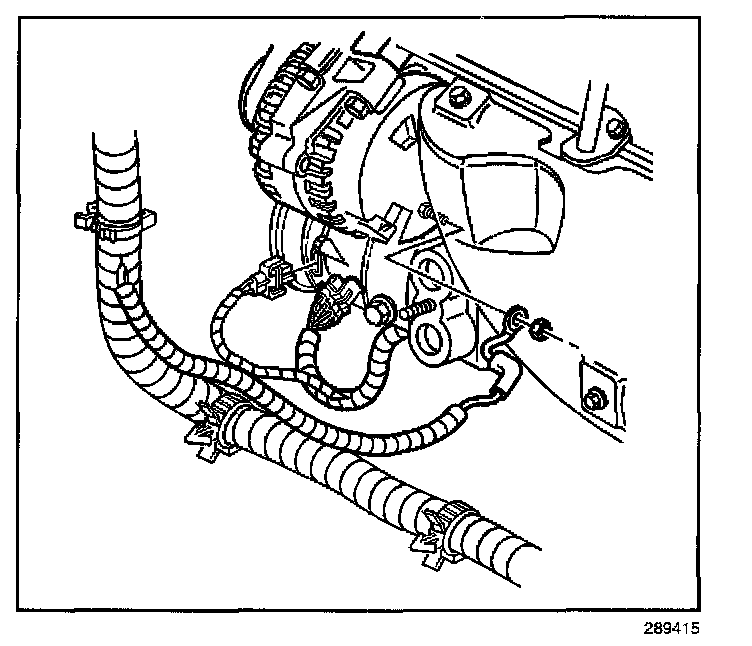 13. Remove the generator output BAT terminal nut and the positive battery cable from the generator.