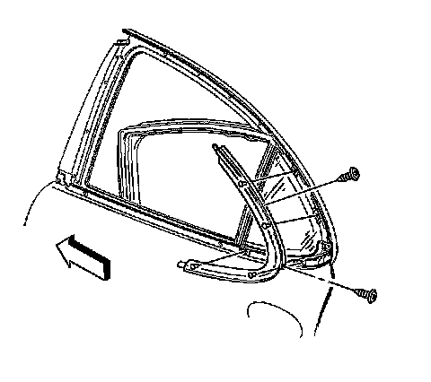 3. Remove the screws from the rear door stationary window molding.