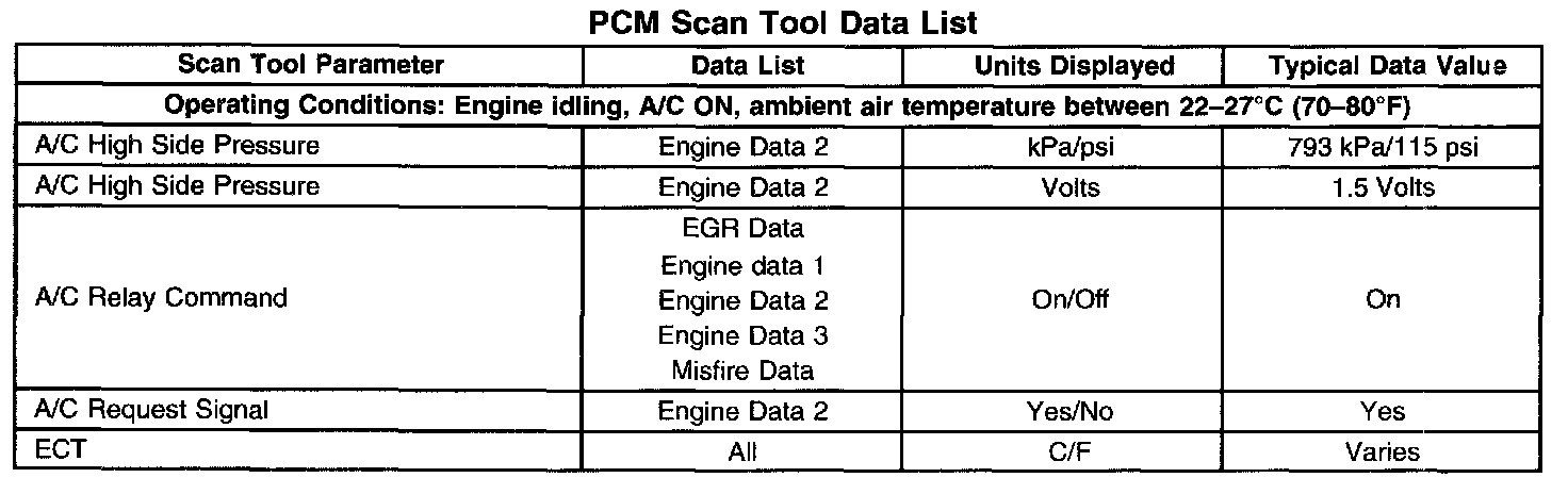 Scan Tool Data List - Powertrain Control Module (PCM)
