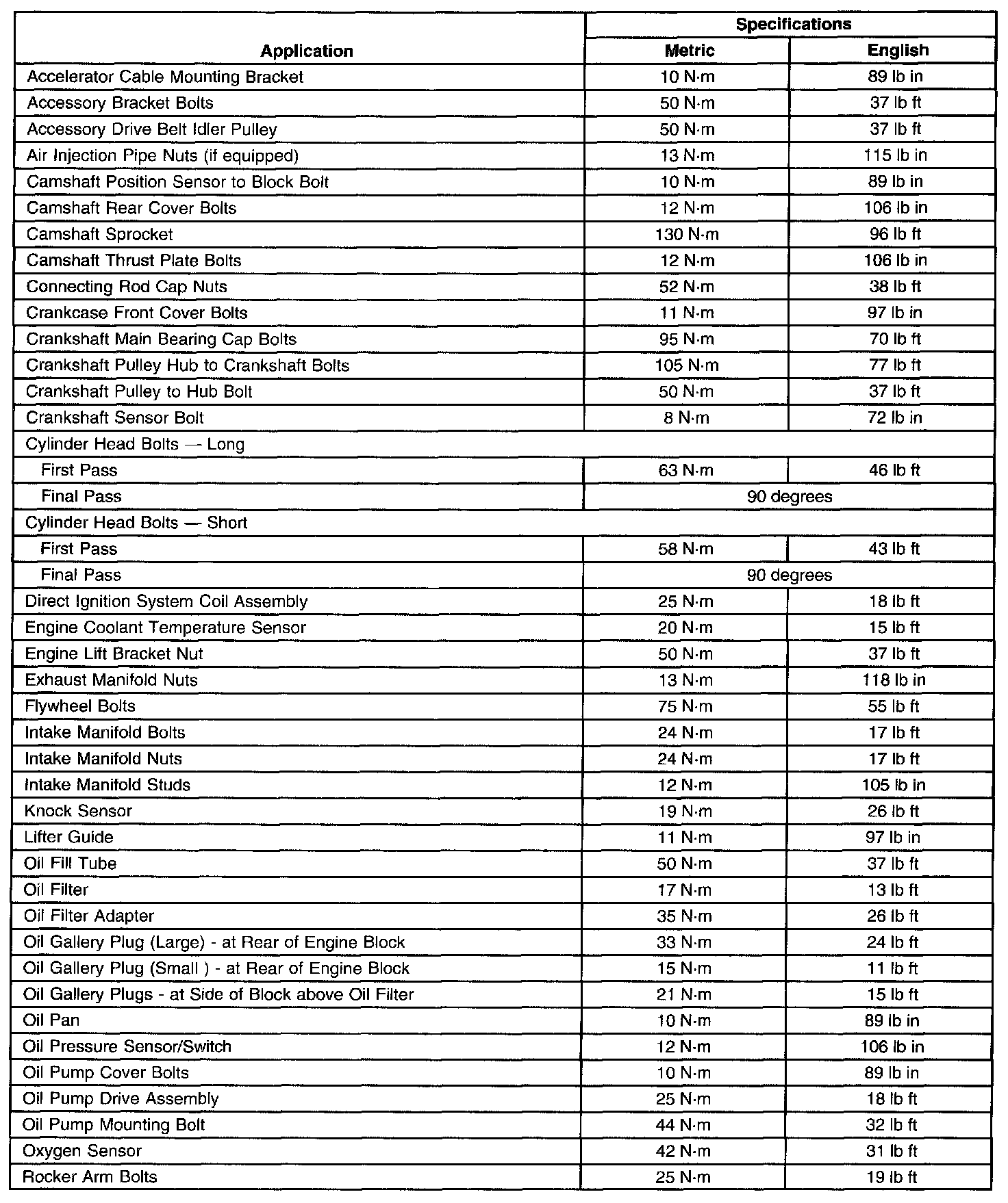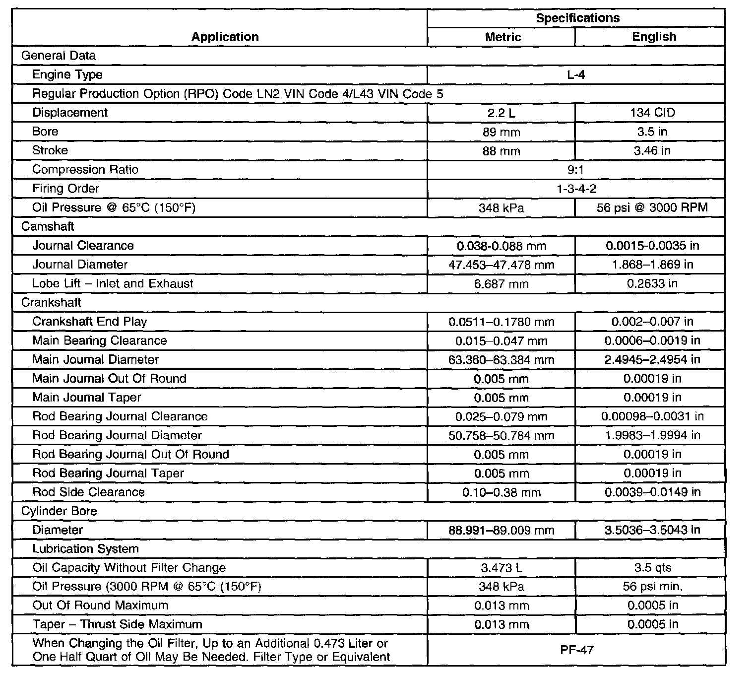 Engine Mechanical Specifications