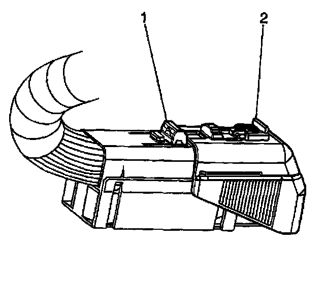 2. Remove the Connector Position Assurance (CPA) (2) from the connector lock tab (1).