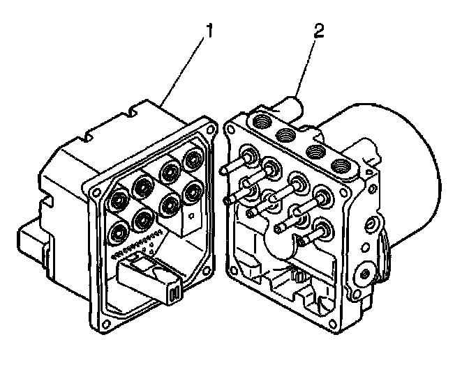 7. Separate the EBCM (1) from the BPMV (2) by gently pulling apart until separated.