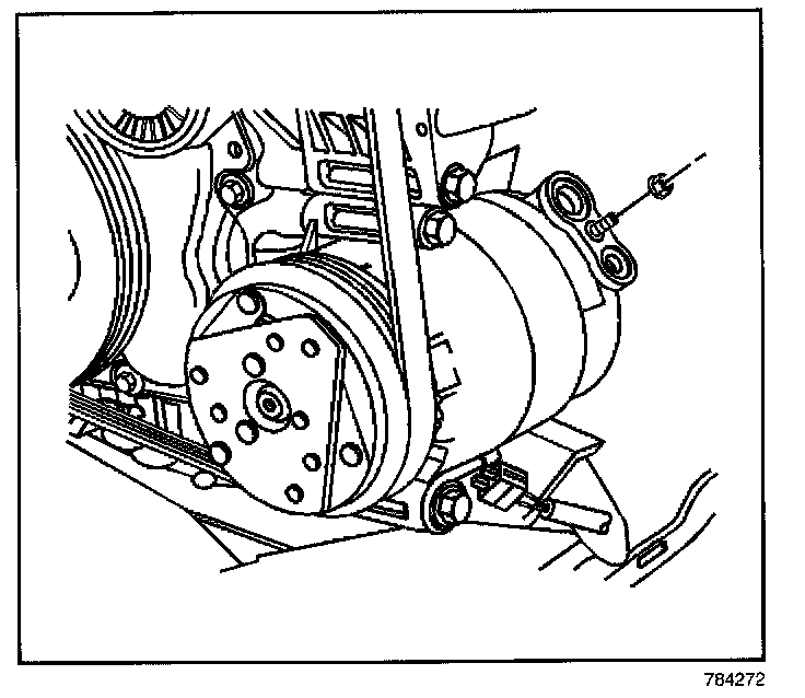 4. Remove the bolt holding the compressor hose assembly to the compressor.