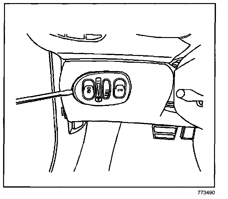 1. Remove the fog lamp/dimmer switch trim plate from the instrument panel using a small flat-bladed tool.