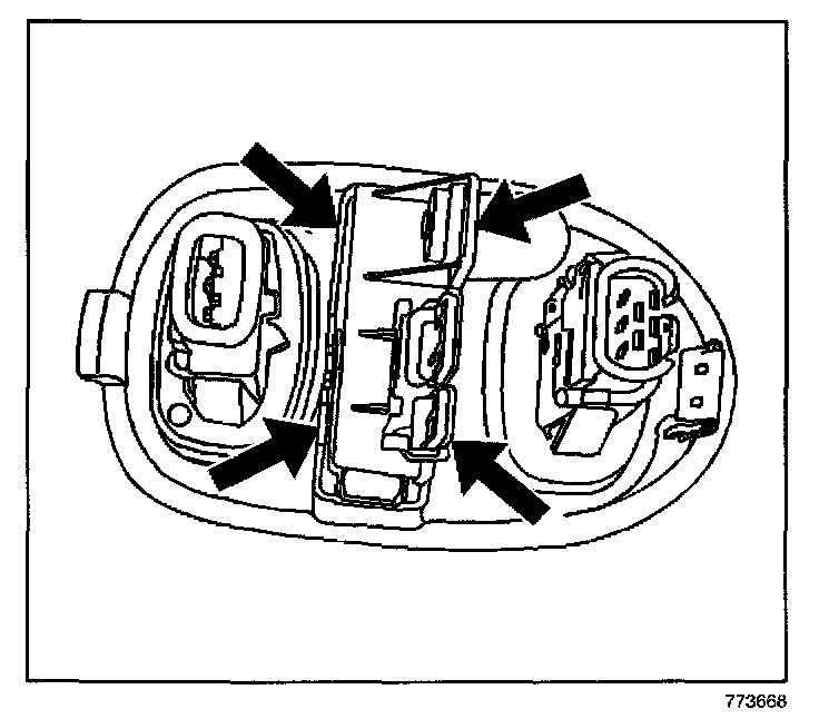 4. Release the retainer tabs on the dimmer lamp switch using a small flat-bladed tool on the back side.